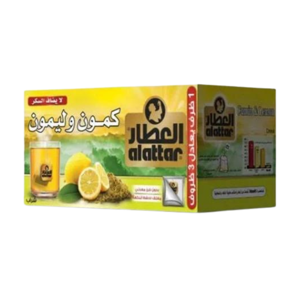 اكتشف نكهة وفوائد مشروب الكمون والليمون العطار، الذي يأتيك في عبوة تحتوي على 24 كيساً من هذا المشروب الفريد والمغذي. يُعد مشروب الكمون والليمون العطار الخيار المثالي لمن يبحث عن مشروب طبيعي يجمع بين النكهات الطازجة والفوائد الصحية.