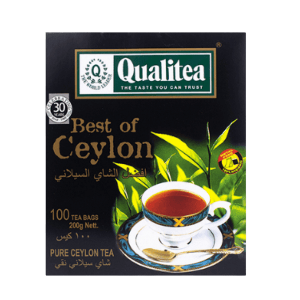 شاي كواليتي سيلاني يأتي في عبوة تحتوي على 100 كيس. يُعتبر شاي سيلاني من الشاي الأسود ذو الجودة العالية، ويتميز بنكهته القوية والطازجة. يمكنك تحضيره بسهولة بإضافة الماء الساخن أو الحليب، وتركه ينقع لبضع دقائق حسب تفضيلك